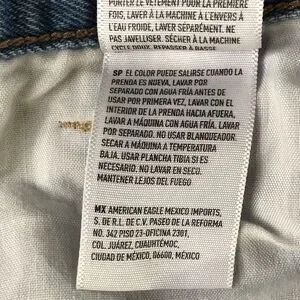 The American Eagle Women's Mom Jean in light blue distressed, size 4 short, is a stylish denim option for women. This skinny jean features a mid-rise fit with a 5-pocket design and a distressed finish, giving it a trendy grunge look. Made from a blend of polyester and cotton, these jeans are machine washable and perfect for wearing in the summer, fall, and spring seasons. The light blue color and American Eagle logo accents add a chic touch to this versatile and comfortable pair of jeans.