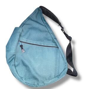 Vintage LL Bean Ameribag Blue Canvas Sling Healthy Back Backpack Shoulder Bag Purse 11" x 19" 1990s