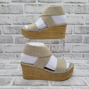 NWOB Charleston Shoe Company Bermuda Wedge Sandal Linen Stretchy Elastic Size 6
