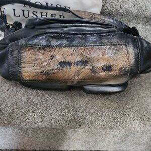 BNNU Ltd. Ed. no longer available Lusher.Co Mini Multi Pocket Shoulder bag in Raw Onyx. Vintage brass hardware, zip closure, adjustable leather 2nd strap, soft washed cotton logo lining, interior zip pocket with two slip pockets and five exterior pockets. Handmade in Tuscany Italy. Measures 7"H x 13"L x 4.5"W. Comes with dust bag. Pet & smoke free home.