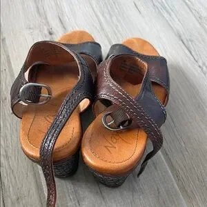 Chic dark brown leather sandals by Naya. Stylish and comfortable for any outing.
