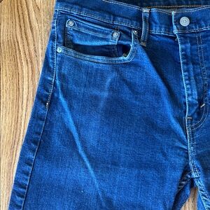 Levi’s 502 jeans are men’s tapered fit jeans, worn very little. They have a tapered leg silhouette that is wider at the thigh and narrows down toward the ankle, providing a sleek, modern look. The fit sits below the waist with extra room in the seat and thigh for comfort, and the leg tapers to the ankle for a clean finish. These jeans feature advanced stretch technology, allowing flexibility without bagging or sagging. The zipper fly adds practicality for easy on and off. They are considered a versatile, refined alternative to classic straight-leg jeans. The 502 fit is slimmer than straight fit but not as slim as skinny jeans, creating a tailored but comfortable style suitable for everyday wear (512)