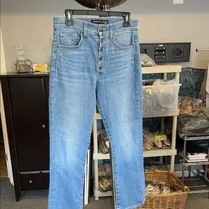 #VeronicaBeard #DesignerDenim #KickFlareJeans #HighRiseDenim #ButtonFlyJeans #LightWashJeans #Size28