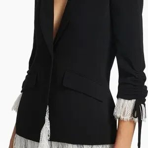 Cinq a Sept Black and White Ruffled Blazer
