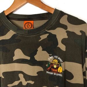 Teddy Fresh Smokey the Bear Size Large Long Sleeved T Shirt Camo Cotton