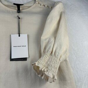 Who What Wear Womens Puff Sleeve Blouse Size XS Cream Coquette Feminine Top NWT
