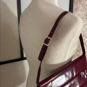Chic and versatile shoulder bag. Deep red hue with sleek design. Perfect for elevating any outfit.
