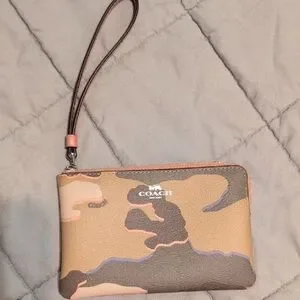 Coach camo wristlet. New never used. has two small pockets on inside to hold cards.