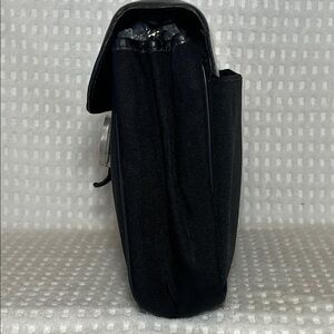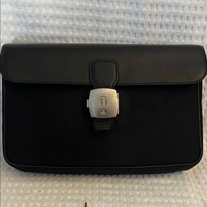 Sleek and stylish black leather/nylon Dunhill Lock & Key Clutch, perfect for any occasion. Features a secure clasp for added safety.