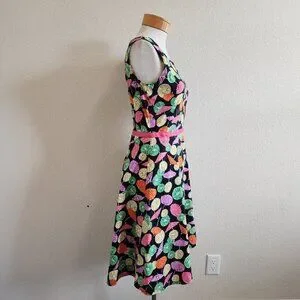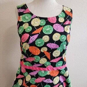 Vintage Requirements Cocktail Umbrella Lemon Lime Novelty Fit Flare Dress 8/S
