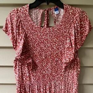VGUC Old Navy Sz-L(M) Red & White Floral Layers, Ruffled Sleeves, Gathered Chest