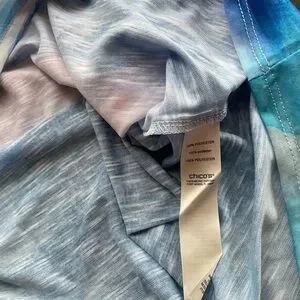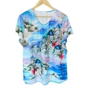 Weekends by Chico’s Santorini Clouds High/Low V-neck Short Sleeve Watercolor Top - Size 3 (US 16)