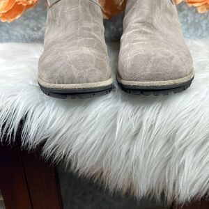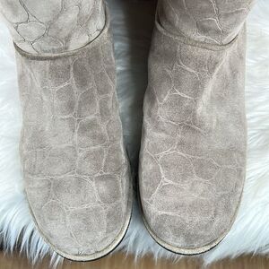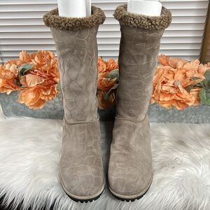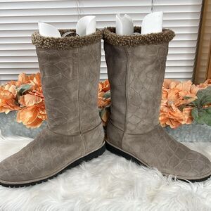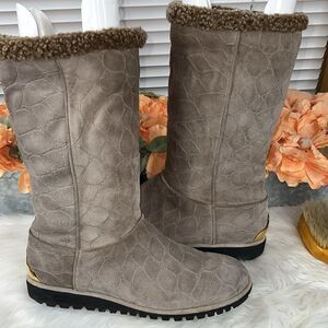 Stuart Weitzman Gray Embossed Shearling Boots Size 9.5