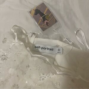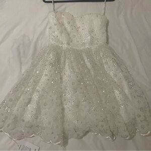 Self Portrait White Beaded Sequin Bandeau mini dress size US2