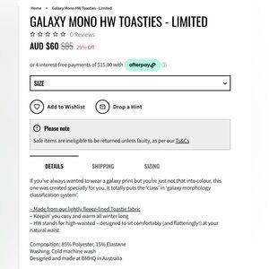 Brand new with tags. Size Medium but also fits small. Stretchy. Fleece lined for warmth and super comfy!!
