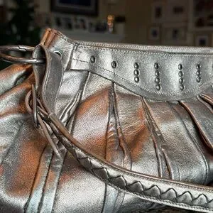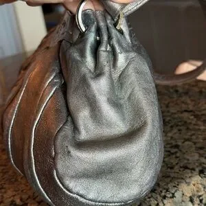 It is a really beautiful metallic leather- the color is really a ‘shapeshifter’ as it looks more gold, more silver or more bronze in different lights or with different colored clothing. Definitely a subtle metallic look and not over the top, imho.