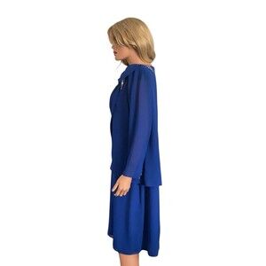 Vtg Dress 80s Long Sleeve Evening XLP Mother The Bride Modest Blue Sequins Midi