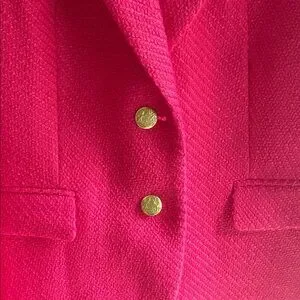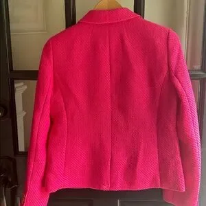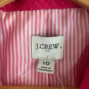 NWT, J Crew blazer, size 10. 2 gold buttons on the front, 3 on each cuff. Pink pin stripped lining. Super cute with jeans and kitten heels!