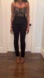 Chic black and tan top with lace accents. Ideal for stylish evenings.