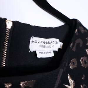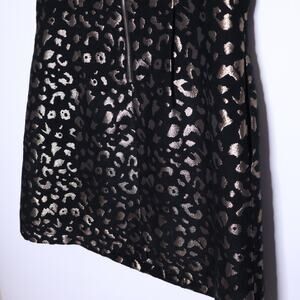MOLLY BRACKEN Black Leopard Print Mini Dress Metallic Rose Gold Lined Women's S