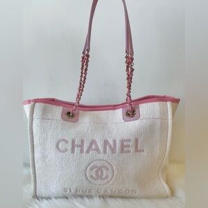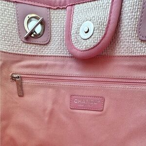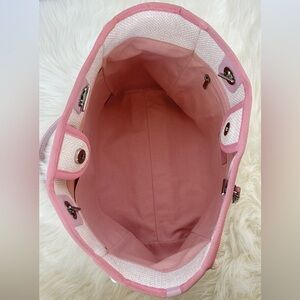 Chanel Pink and White Small Woven Straw Raffia Deauville