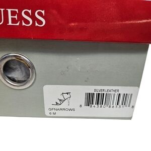In like new condition Guess Metallic Silver Leather Strappy Stiletto High Heels Size 6 Women's.