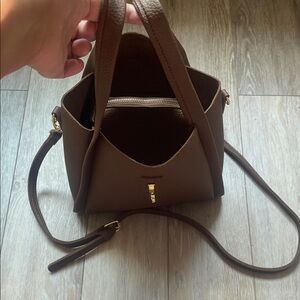 New without tags. Perfect condition. This elegant brown leather tote bag is perfect for any occasion. Its sleek design and durable material make it a must-have accessory. The gold accents add a touch of sophistication.