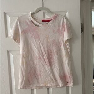 This stylish kids' tie-dye t-shirt features a blend of pink and cream colors, perfect for a fun and vibrant look. Made for comfort and style, it's a great addition to any child's wardrobe.