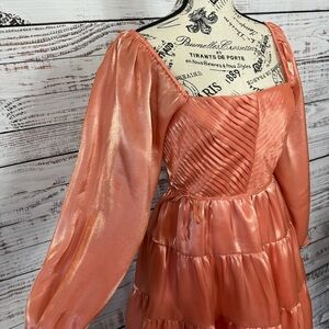 Fate Dress peach balloon Dressy long sleeve size medium Bronze Metallic Dress
