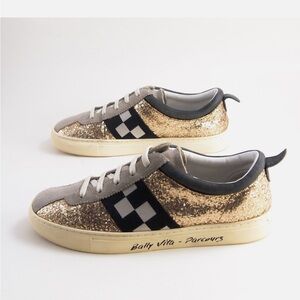 Bally Gold Glitter Sneakers with Black and Gray Accents
