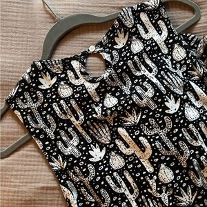 Chic midi dress with a bold cactus pattern. Ideal for casual wear.