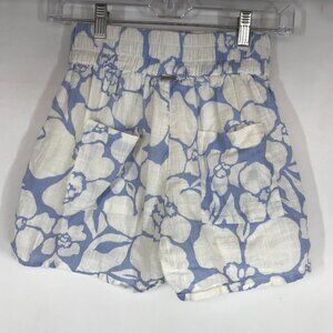 BILLA BONG - WOMEN'S SMALL WHITE & BLUE FLORAL ELASTIC WAIST LINED COTTON SHORTS