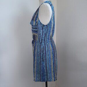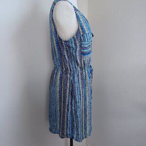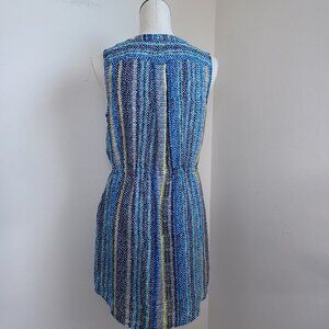 Skies Are Blue Shirt Dress Colorful Sleeveless Button Front Tie Waist Womens L