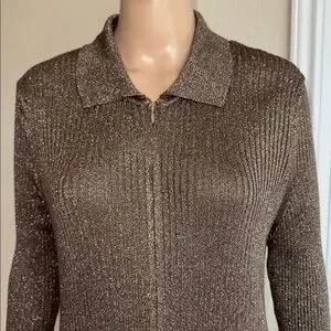 NWT ANTHROPOLOGIE Metallic Brown Long Sleeve Dress Sz. XL.