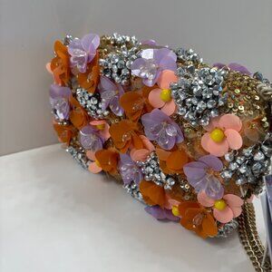 Beaded Floral Bling Hardshell Evening / Wedding/ Cocktail Party Crossbody Bag - NWT