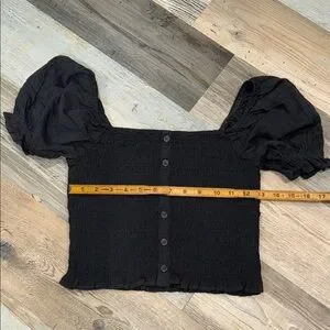 Aerie washed Black Smocked Puff Sleeve Blouse