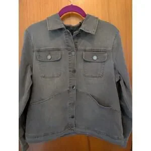 Diane Gilman DG2 Women's LS Gray Stretch Jacket Sunflower Embroidery Size Large