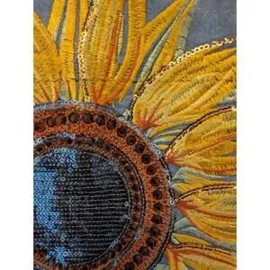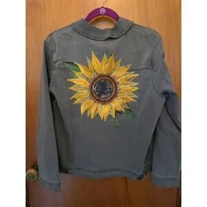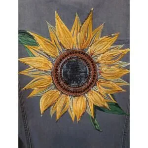 Beautiful yellow sunflower embroidered on the back of the jacket.