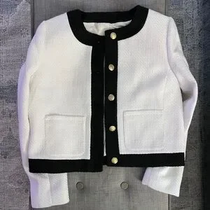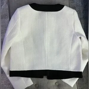 Elevate your wardrobe with this elegant women's blazer in classic white and black. Perfect for both professional and casual settings.