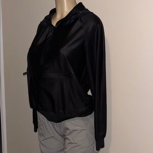 Maison d'Amelie Black Faux Leather Half Zip Pullover Hooded pullover size S