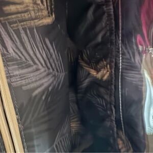 Main zipper compartment, two compartments with magnetic closures, back soft-lined slip pocket with magnetic closure, double tote handles, four feet Two cargo pockets, zipper pocket, clear-view zipper pocket with two slots, insulated zipper pocket, two card slots, accessory slot, two pen holders, retractable key chain, RFID-back compartment with card slots