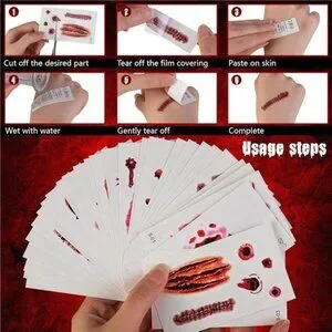Halloween Butcher Costume Set- Cooking Chef Apron Gloves Prop Knife Tattoo