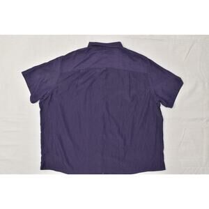 This is a brand new with tags (NWT) HB men's short sleeve button-down shirt in a classic navy blue color. The shirt is made from 100% polyester fabric, making it lightweight and comfortable. The fabric features a subtle, textured micro-stripe pattern. Designed for big and tall men, this shirt is a size 3XL, with an armpit-to-armpit measurement of approximately 34 inches and a length of 32.5 inches. It features a full button closure, a standard collar, and a single chest pocket. This versatile shirt is perfect for casual wear, whether you're heading to the office or a weekend outing. Please refer to the photos for precise measurements and details. This item is in flawless, unworn condition with no signs of wear.