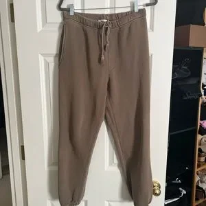 Vintage brown. Worn only once but no flaws. Elwood sweats are 26inches inseam. 15inches waist