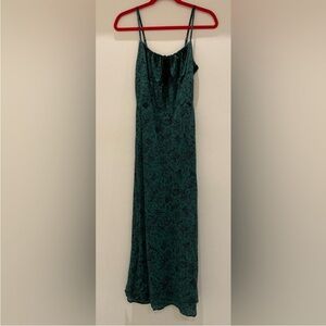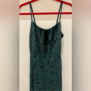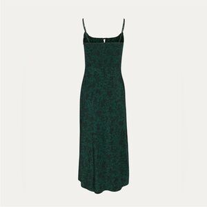 The Alba cut. Chic dark green slip midi dress. Perfect for intimate wear or elegant lounging.