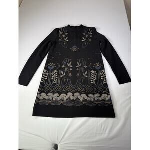 Zara Dress Womens Small Black Long Sleeve Floral Shift Stretch Cocktail