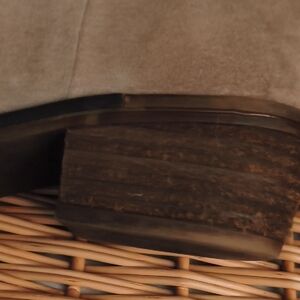 These are highly distressed booties. They are designed to look that way, rough suede texture, heavy duty zippered backs. They gained more distress as I wore them. Awesome with jeans or long bohemian shirt. I'm selling only because they are alittle too small.