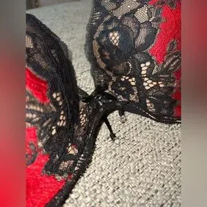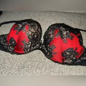Victoria’s Secret push-up bra in EXCELLENT condition. Gorgeous Red base with black floral overlay. Two jewels dangling between cups. So beautiful! New without tags. Elevate your lingerie collection. Ideal for adding elegance to your collection! Absolutely beautiful bra! ♥️