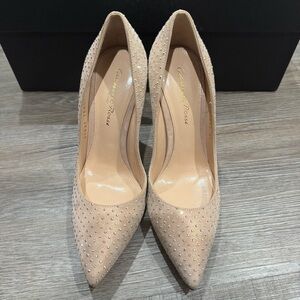 Gianvito Rossi Embellished Crystal Suede Leather Tan Pump Heels