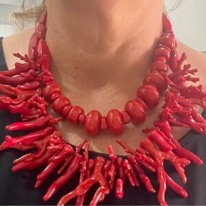 New! This stunning red coral necklace adds a bold touch to any outfit. Perfect for making a statement.